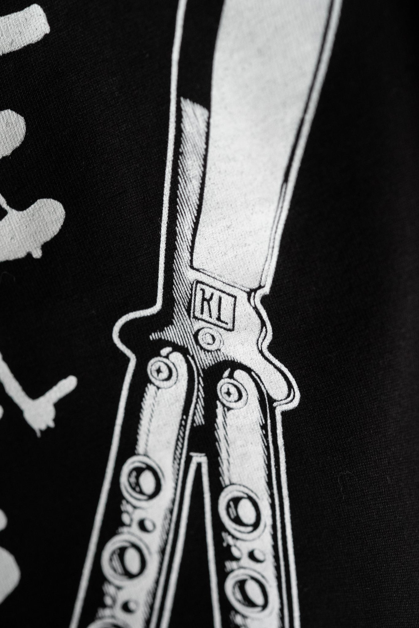 - Doppia impuntura larga a fondo manica e sul bordo inferiore